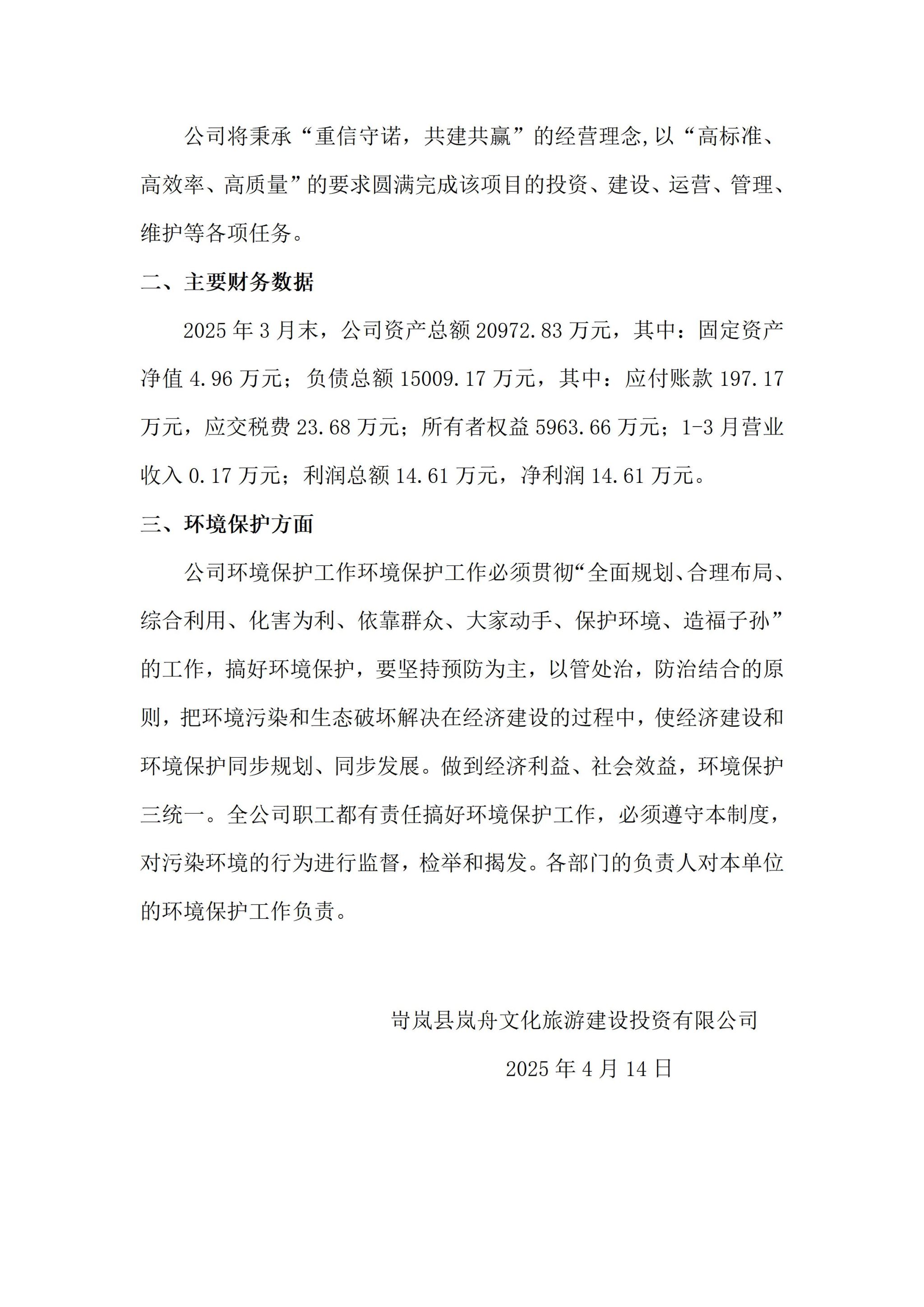 岢岚县岚舟文化旅游建设投资有限公司2025年第一季度企业重大信息果真