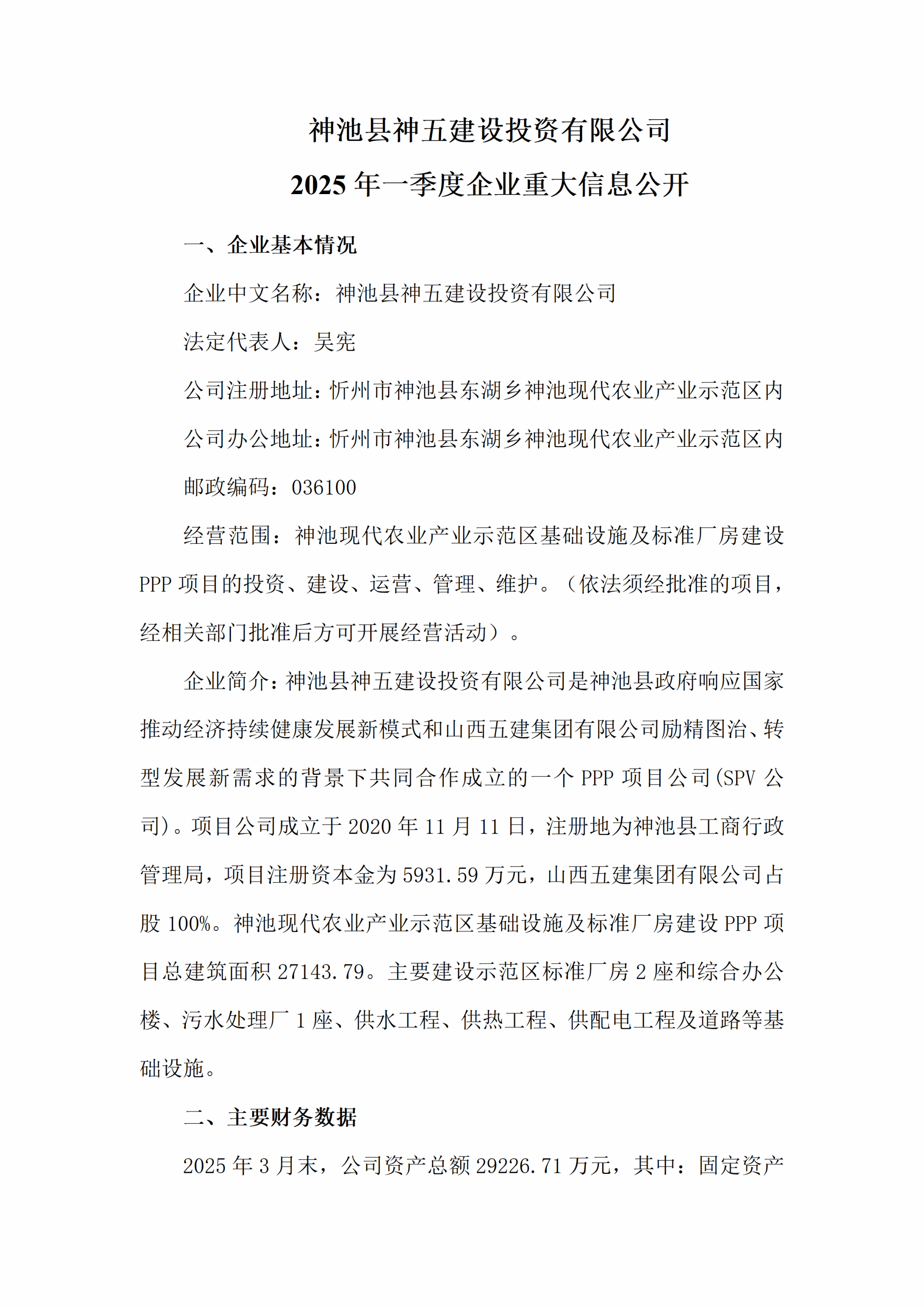 神池县神五建设投资有限公司2025年一第季度企业重大信息果真