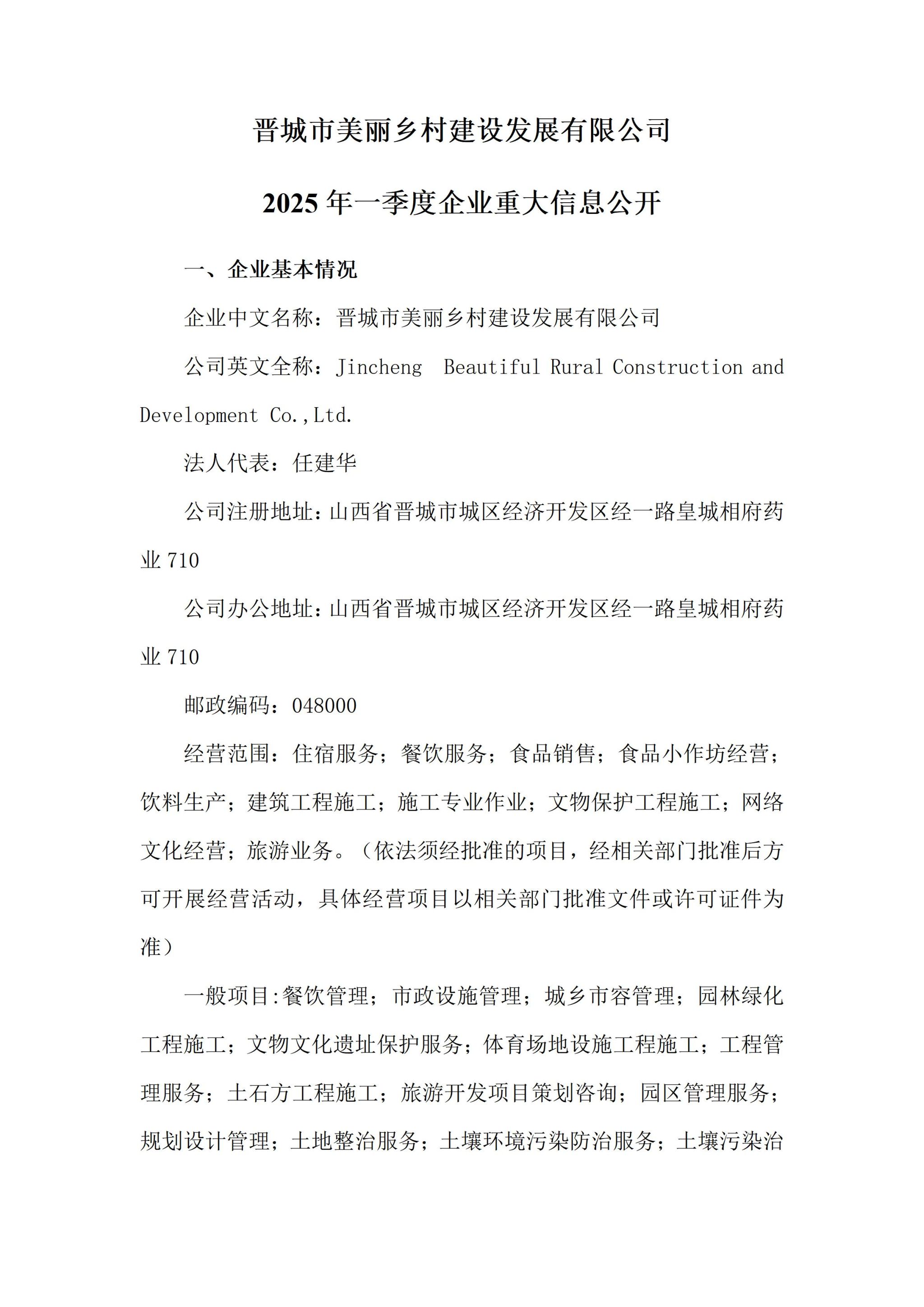 晋都会漂亮墟落建设生长有限公司2025年一季度企业重大信息果真