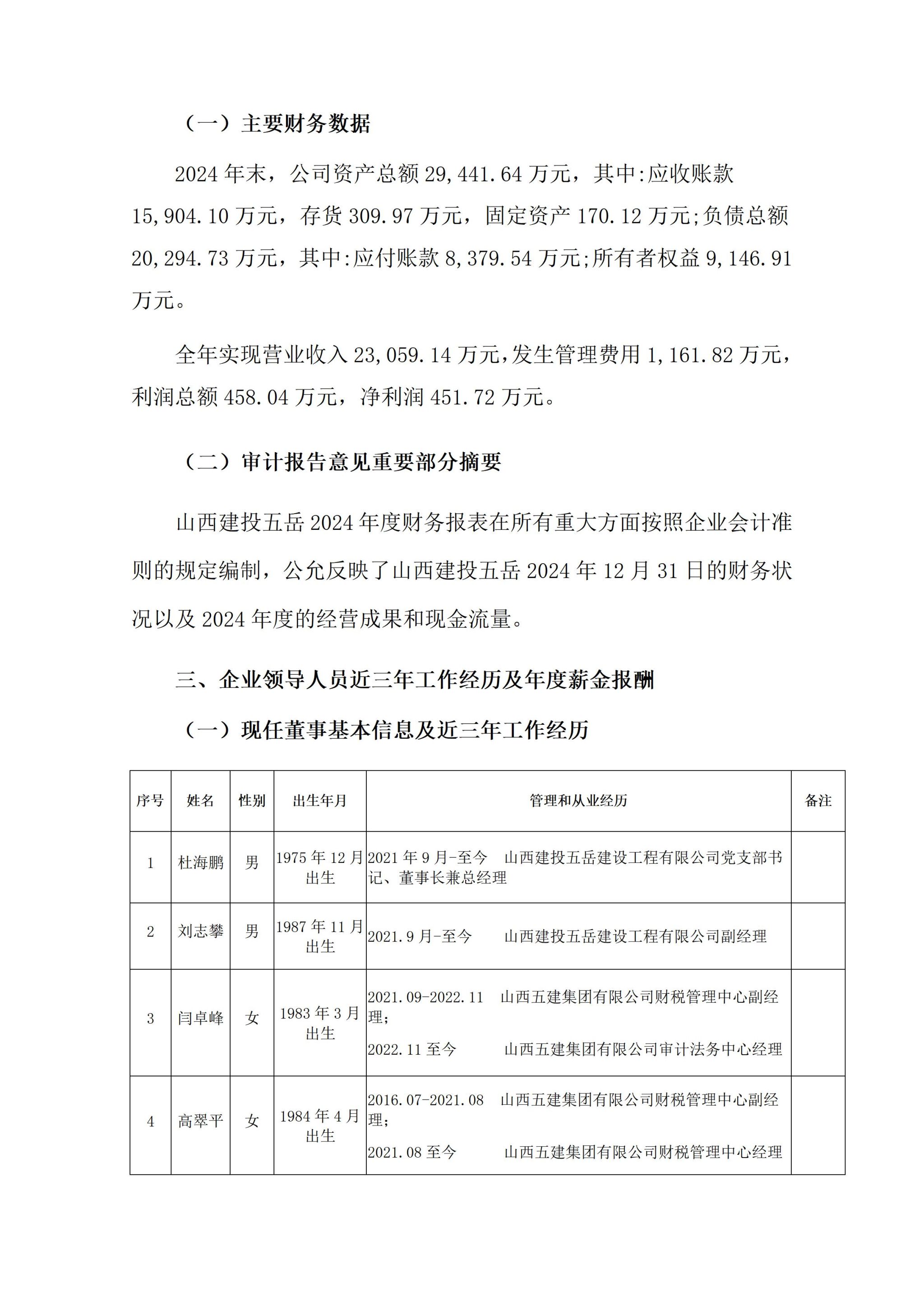 山西建投五岳建设工程有限公司2024年度企业重大信息果真