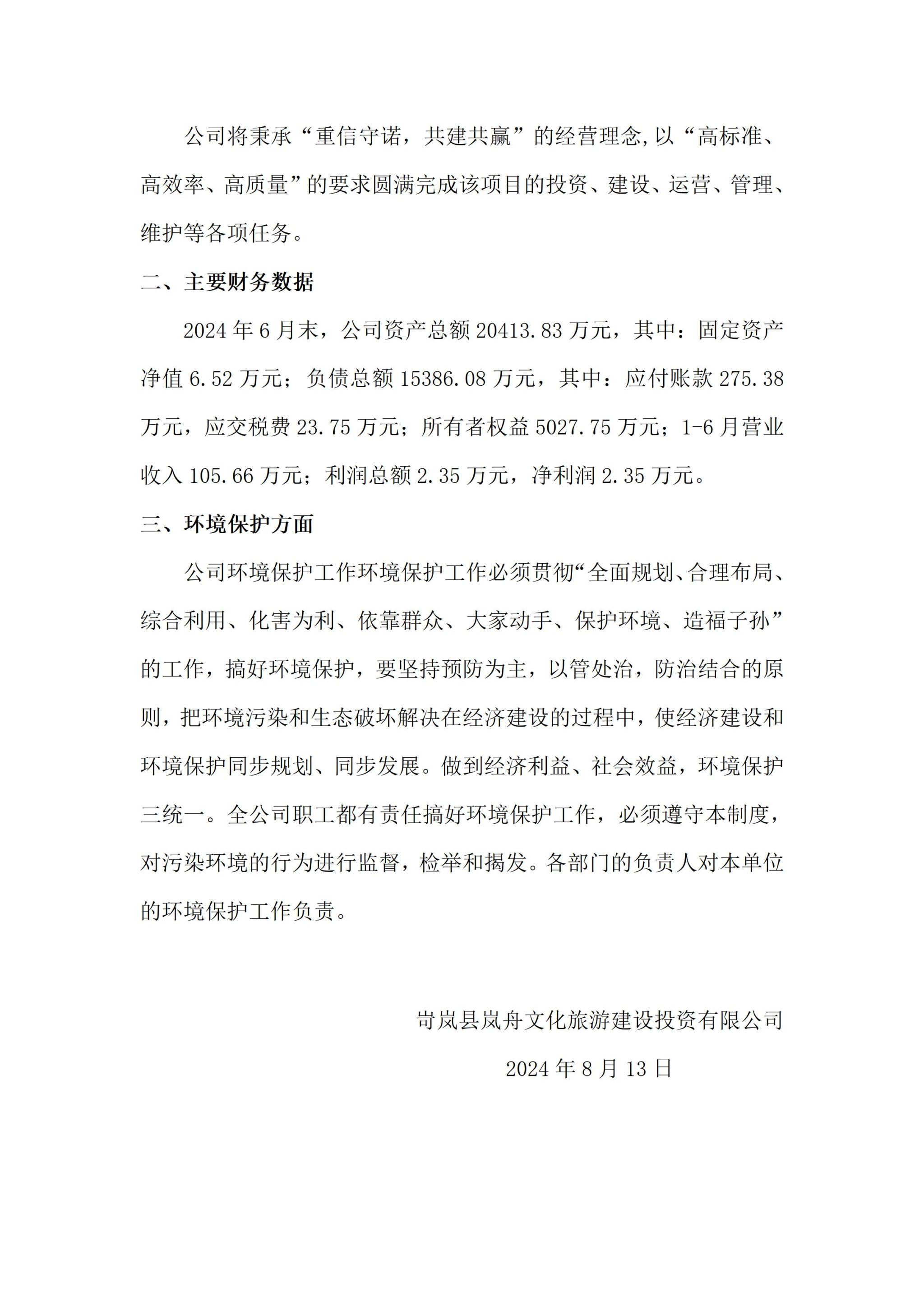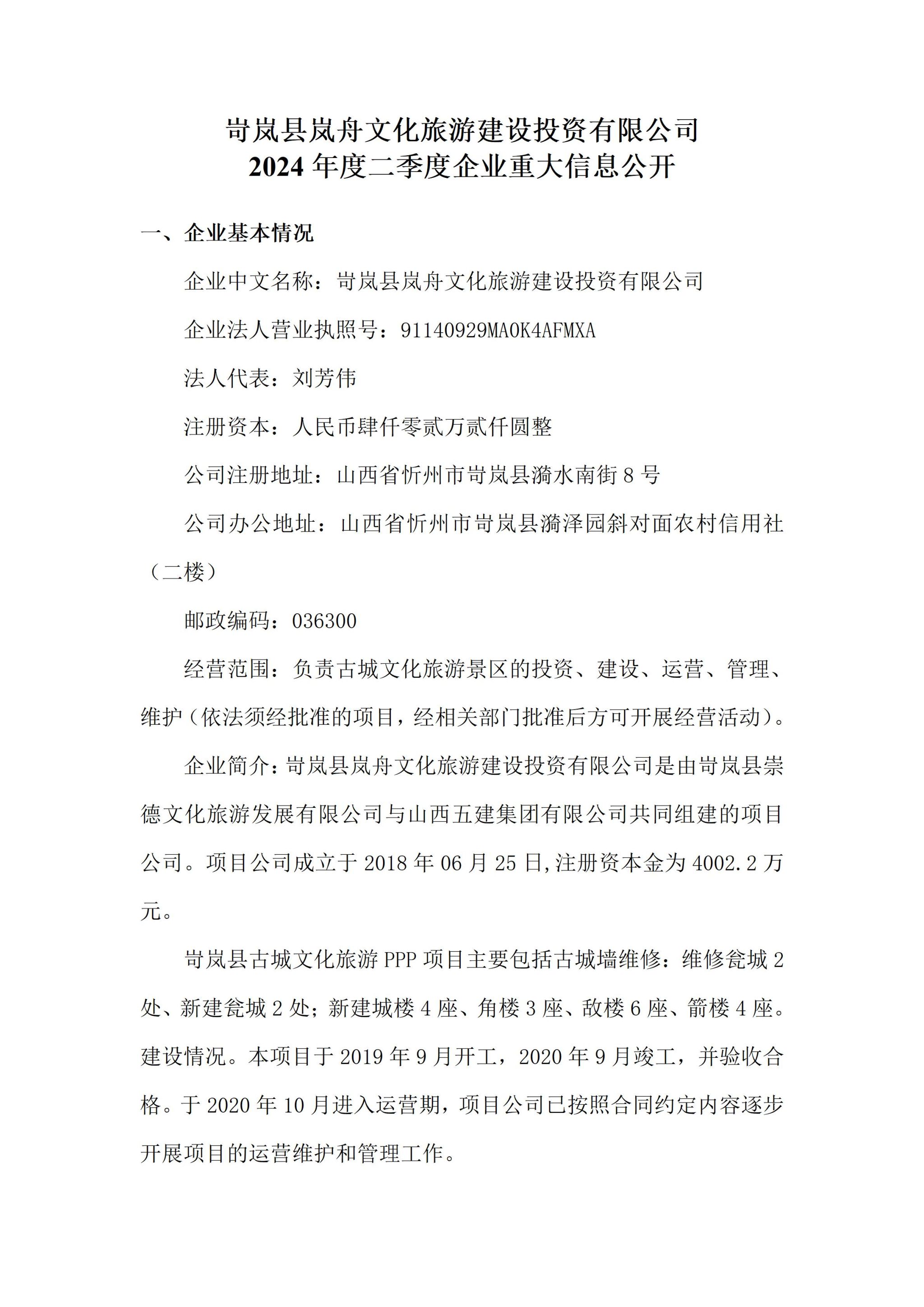 岢岚县岚舟文化旅游建设投资有限公司2024年第二季度企业重大信息果真