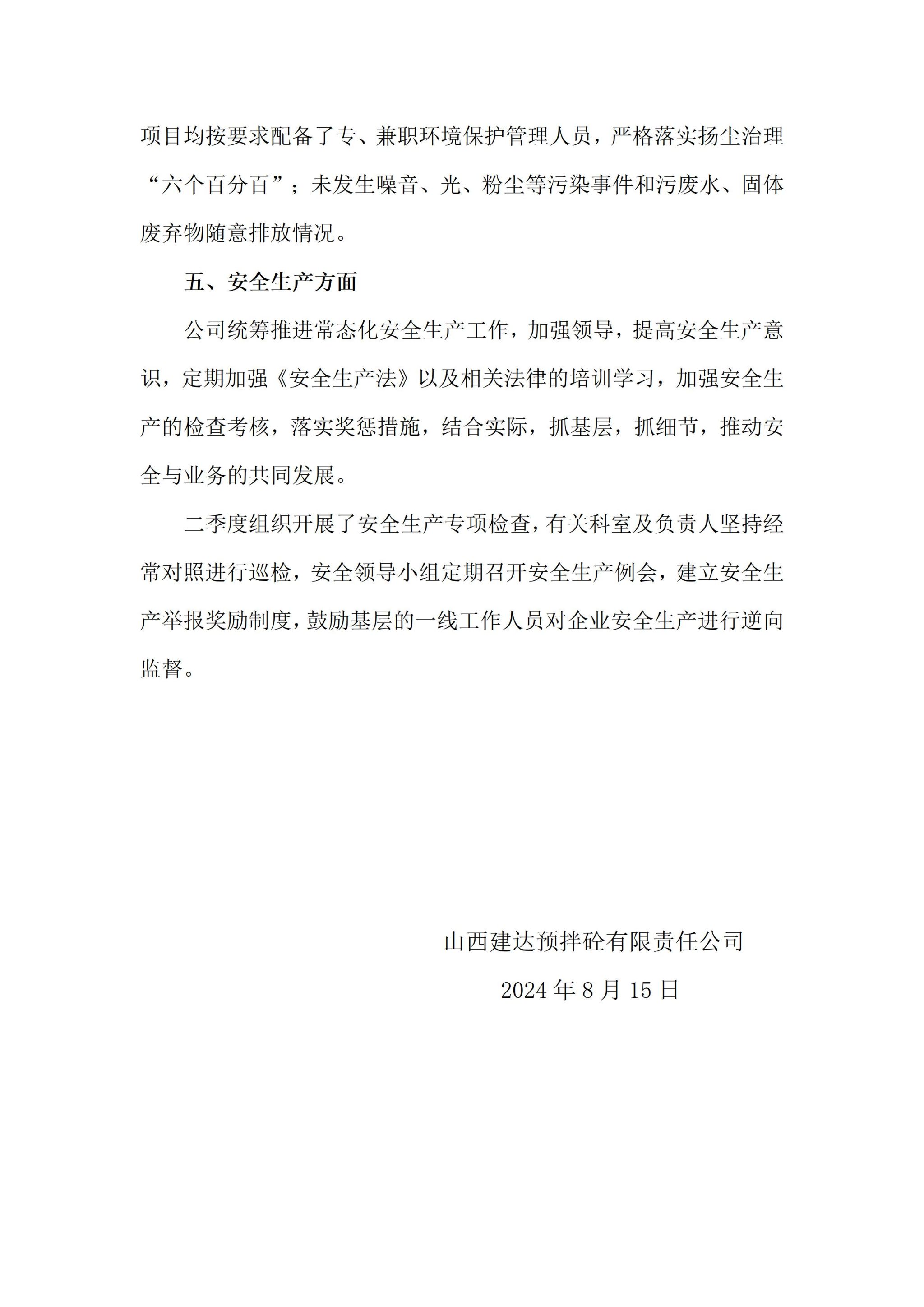 山西建达预拌砼有限责任公司2024年二季度企业重大信息果真