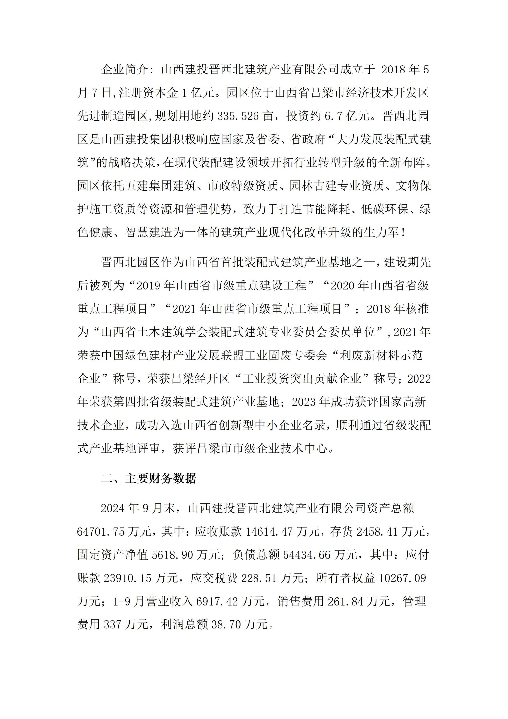 山西建投晋西北修建工业有限公司2024年三季度重大信息果真