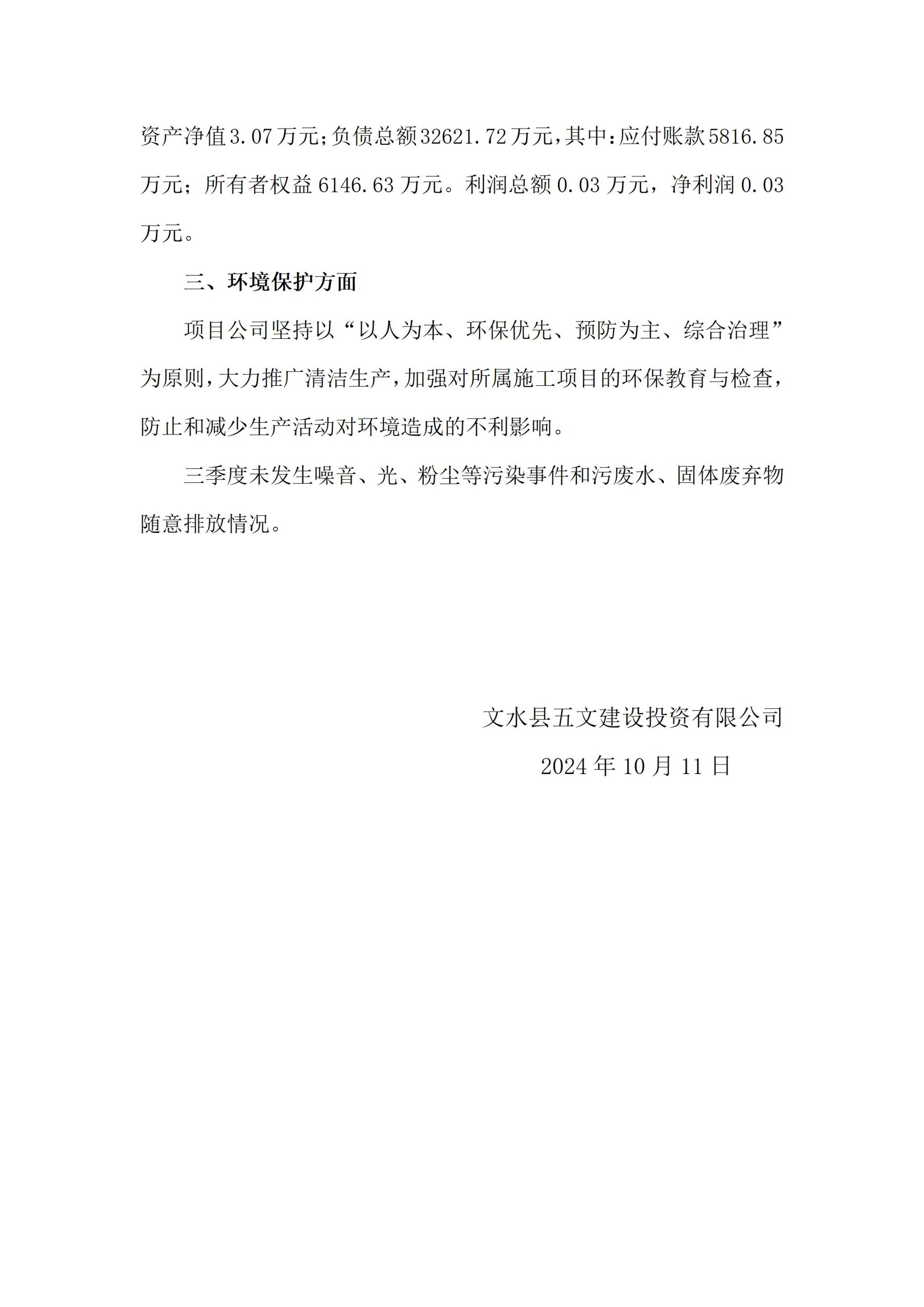 文水县五文建设投资有限公司2024年三季度企业重大信息果真