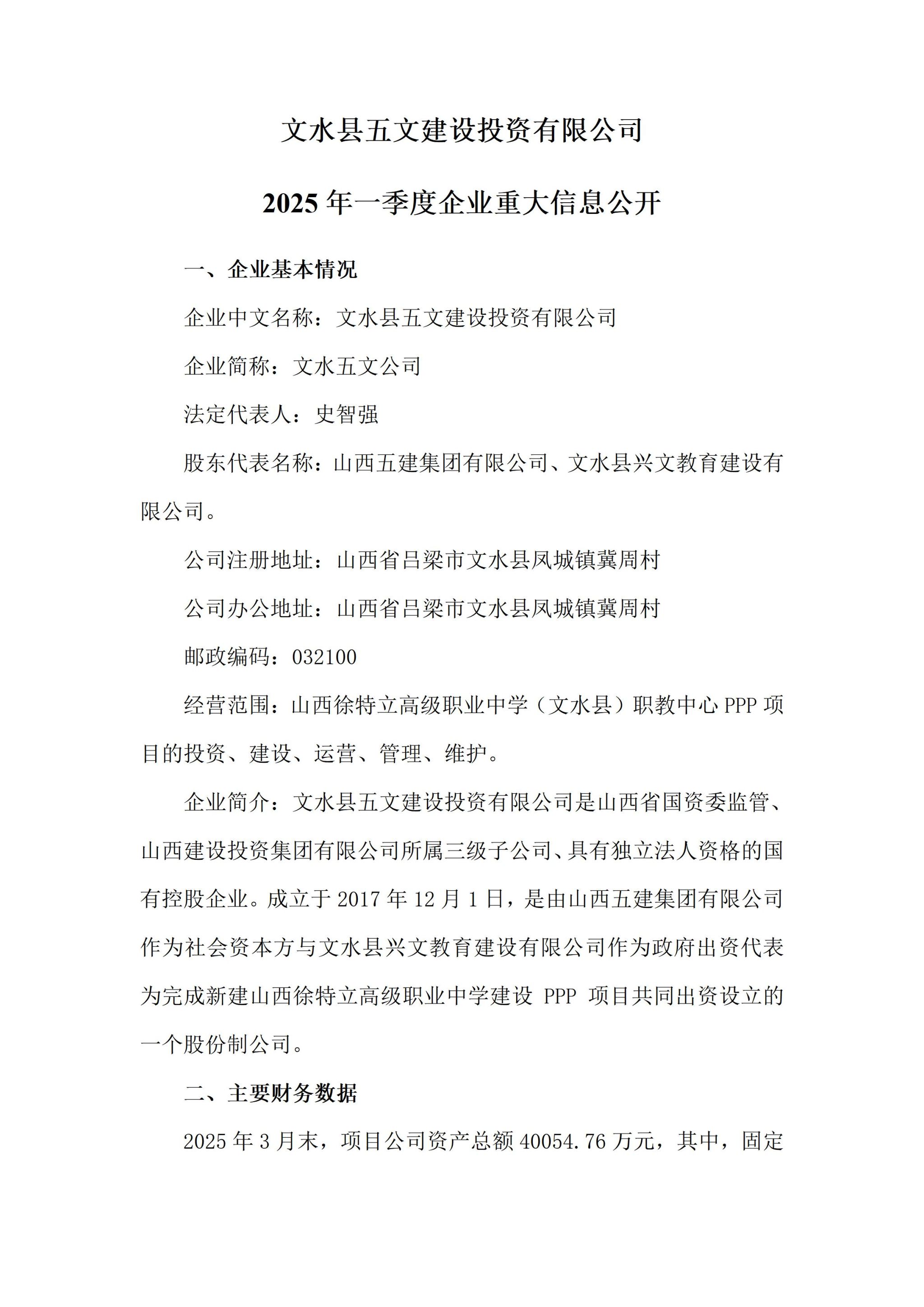 文水县五文建设投资有限公司2025年一季度企业重大信息果真