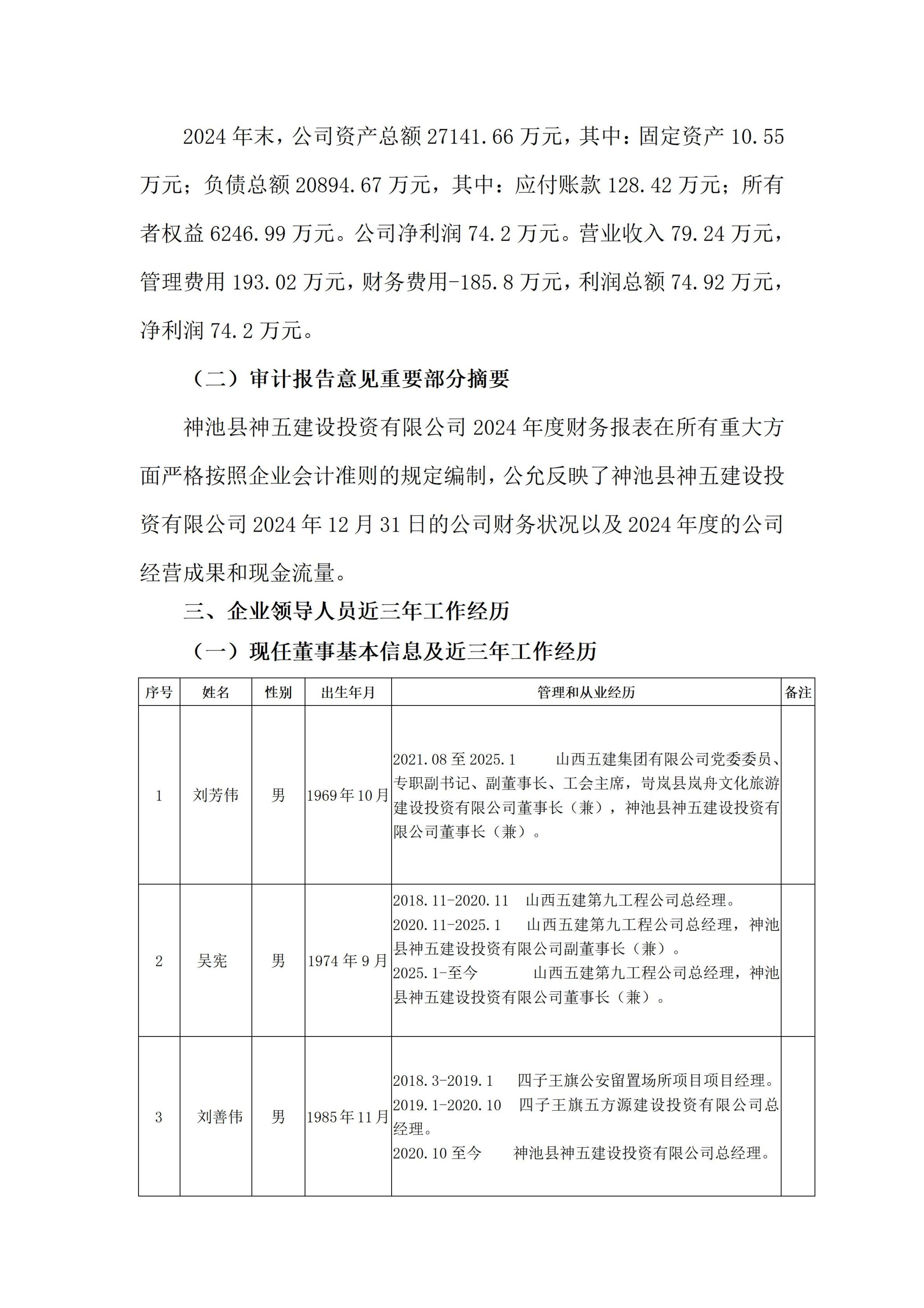 神池县神五建设投资有限公司2024年度企业重大信息果真