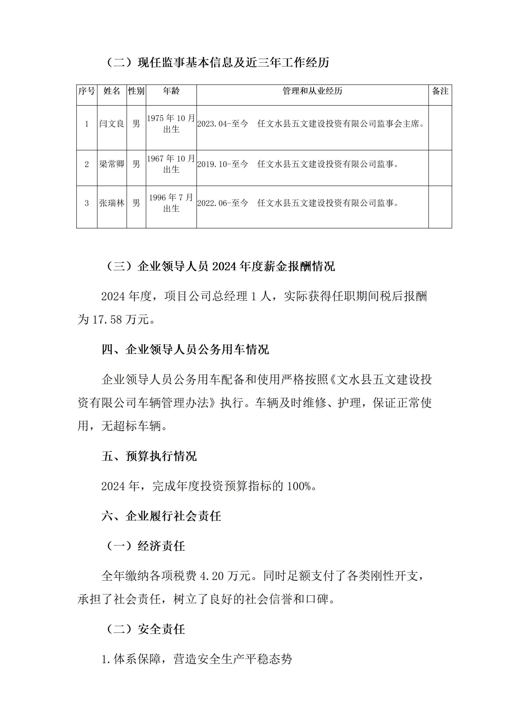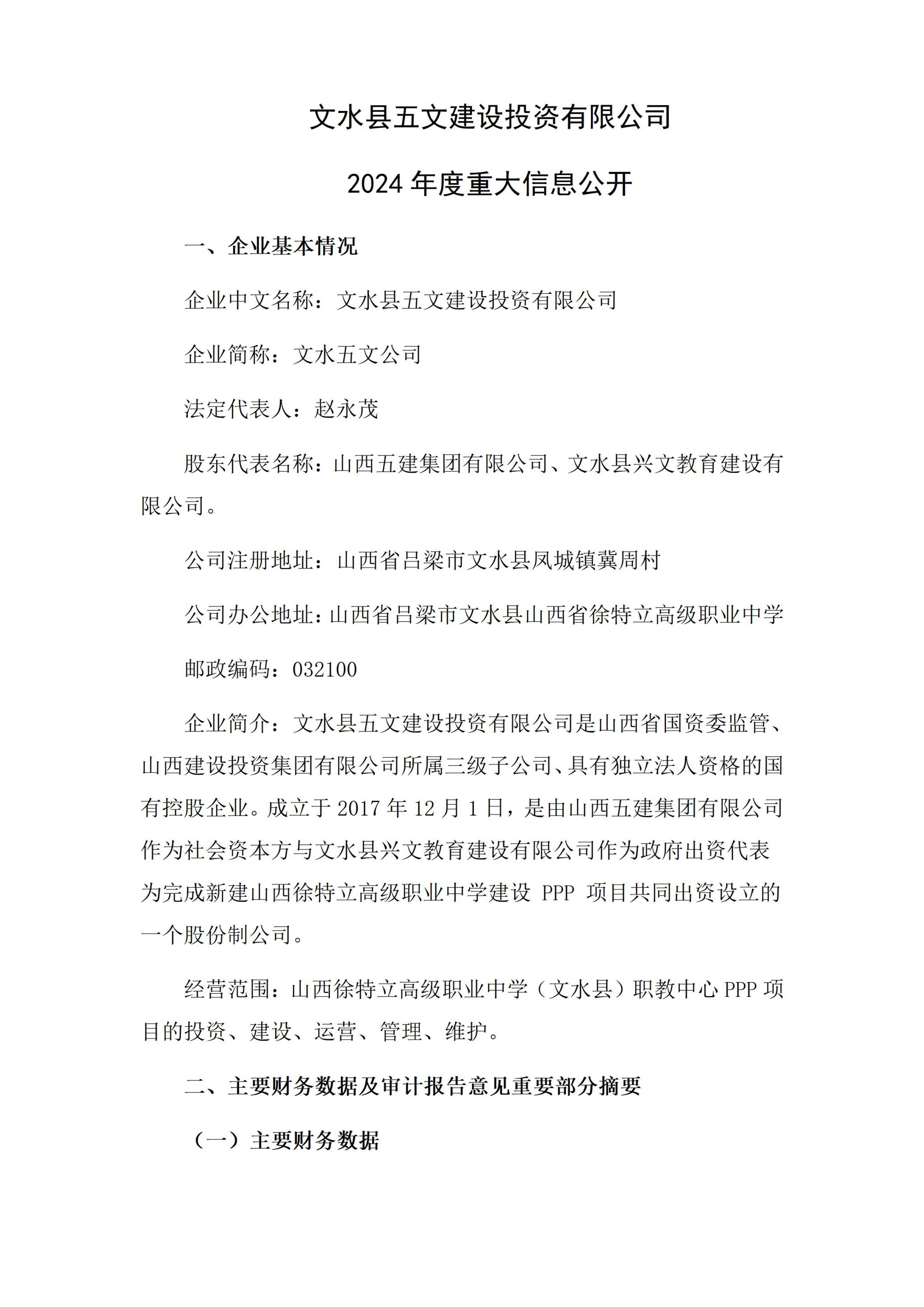 文水县五文建设投资有限公司2024年企业重大信息果真