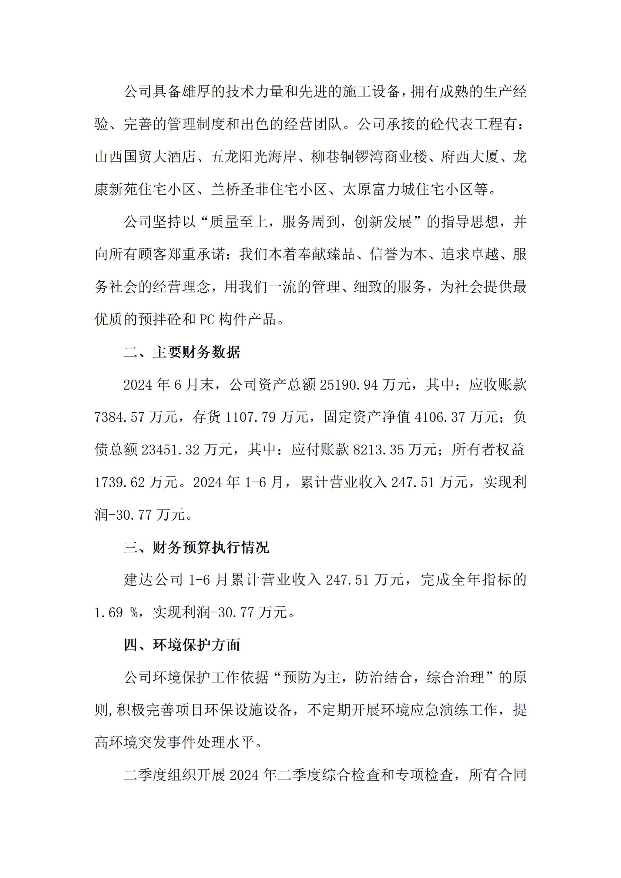 山西建达预拌砼有限责任公司2024年二季度企业重大信息果真