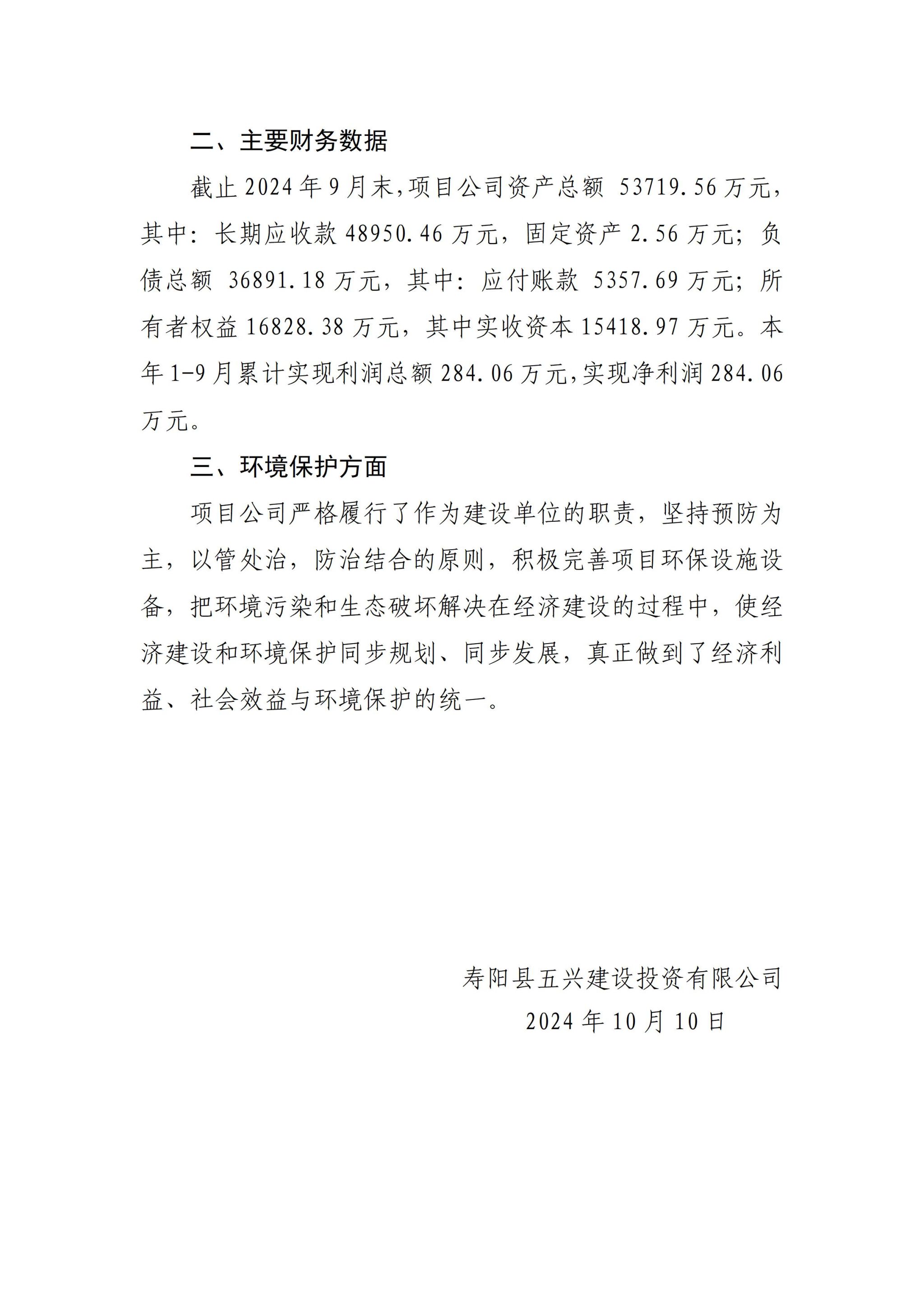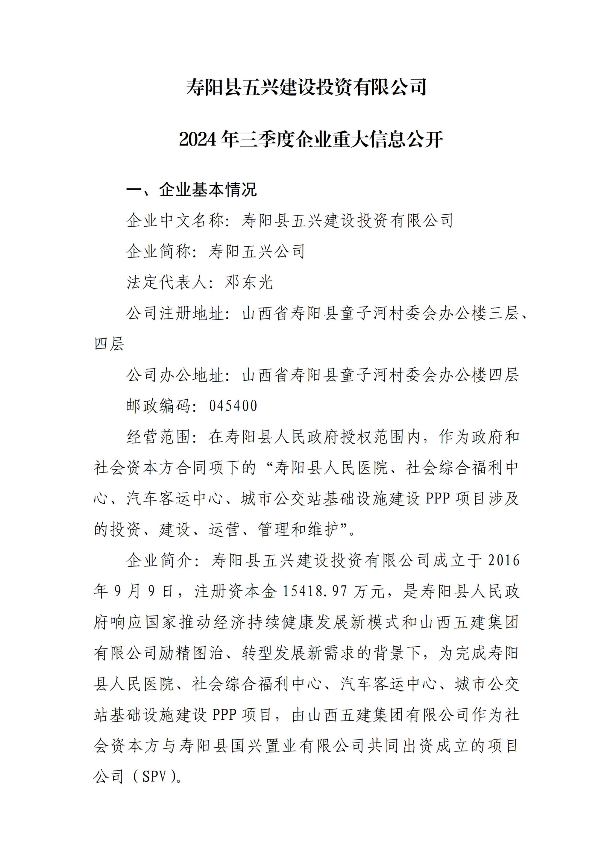 寿阳县五兴建设投资有限公司2024年三季度企业重大信息果真